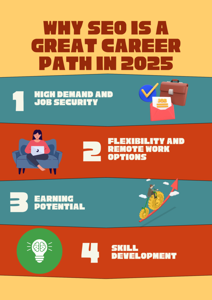 Hence, a career as an SEO expert is a smart and future-proof decision for anyone who is interested in digital marketing. In the present age, every business, whether big or small, has a digital presence. Every business wants to be found on a digital platform. So, this field not only offers job security but also has impressive earning potential. Moreover, it also offers the flexibility of working from anywhere in the world. Thus, it provides endless opportunities for advancement and personal growth in the ever-evolving online world.